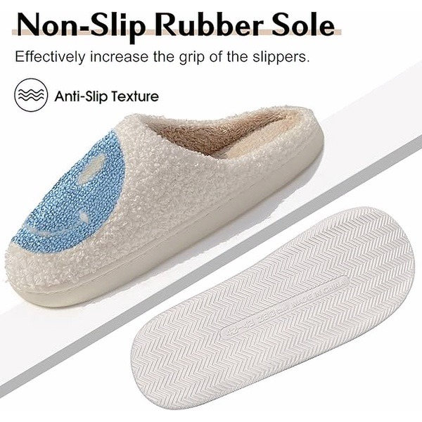 Smile Face Slippers for Women, Soft Plush Smile Slippers Retro Preppy Slippers Happy Face Slippers Slip-on Cozy
